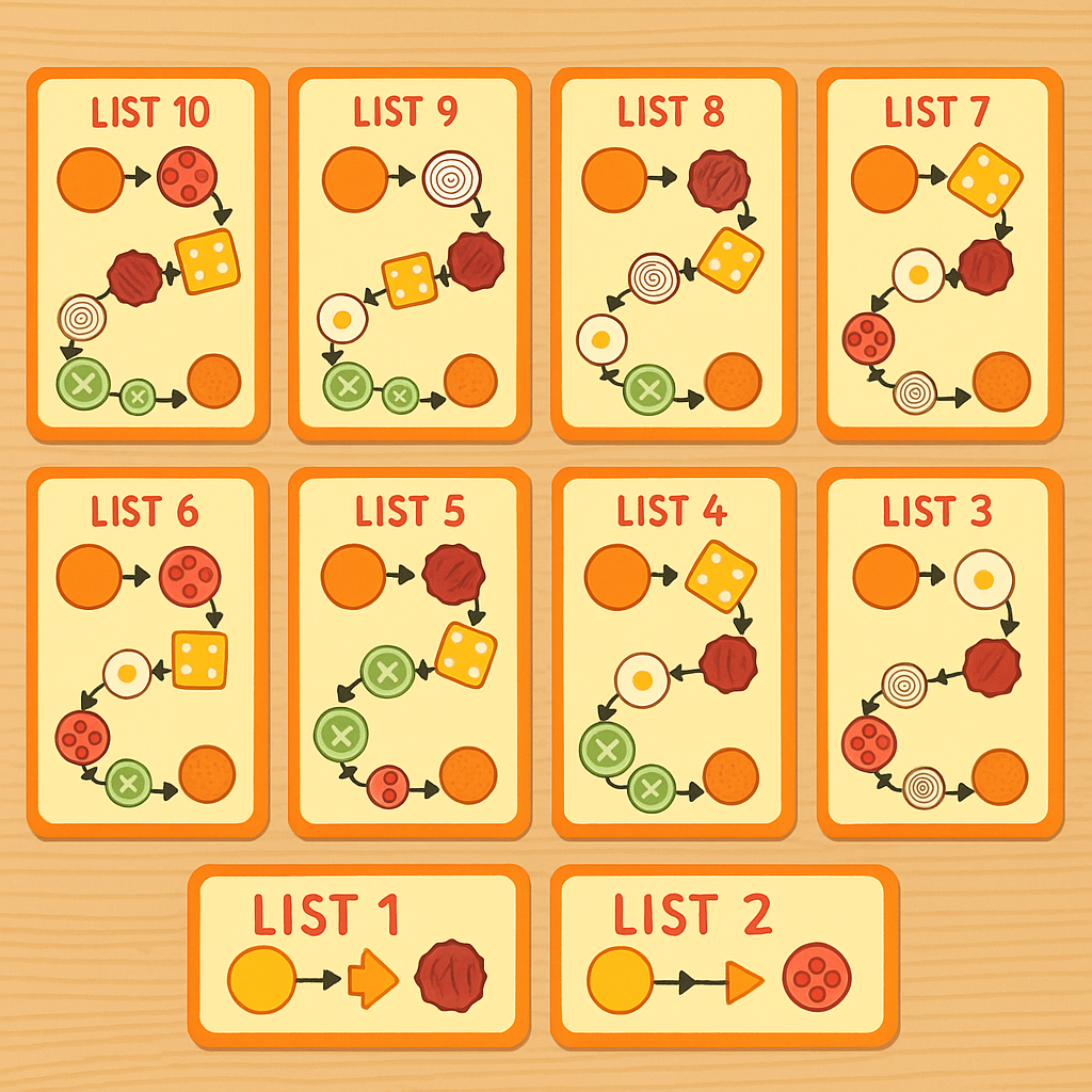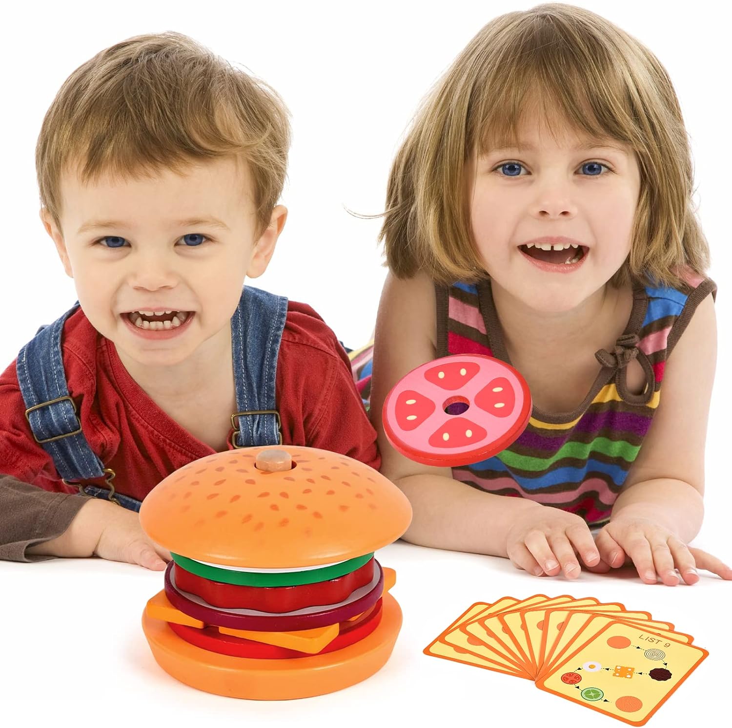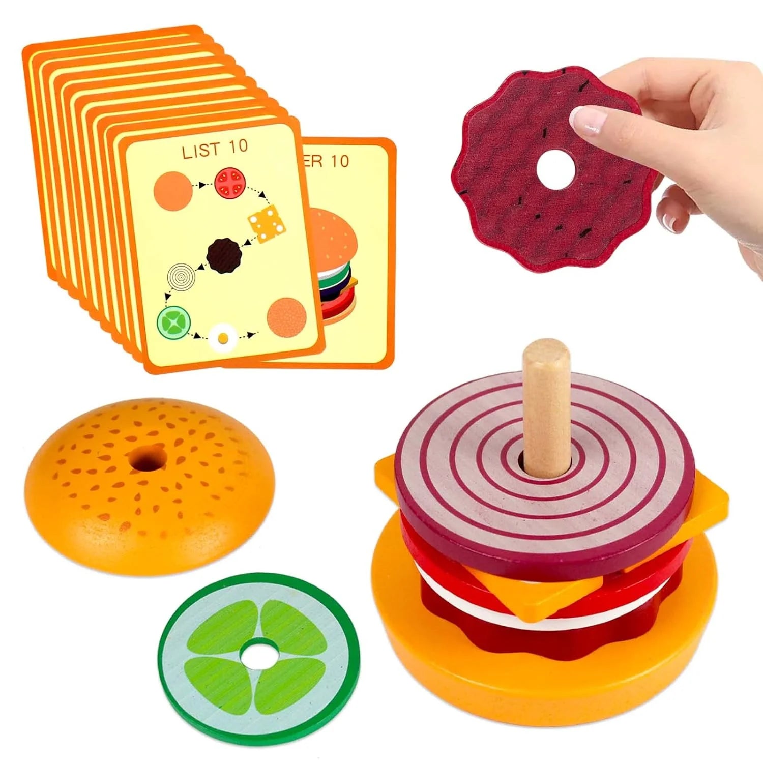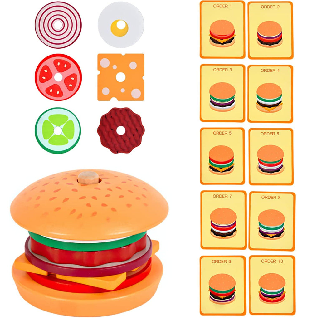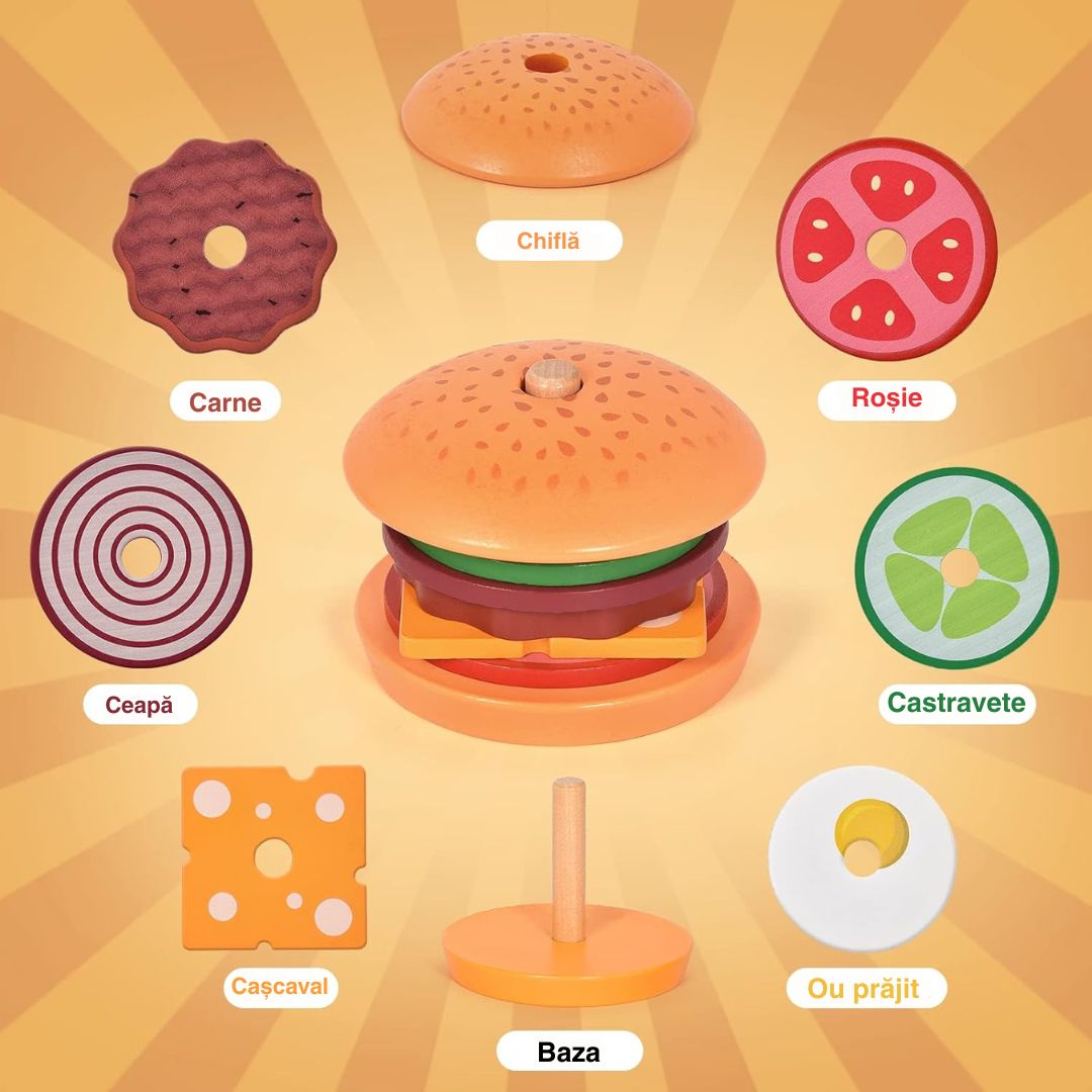 Setul include 10 carduri cu diverse combinatii de burgeri. Copiii pot aranja feliile in functie de comenzile primite de la restaurant sau pot crea combinatii proprii. Aceasta adauga un element de creativitate si explorare in timpul jocului.
